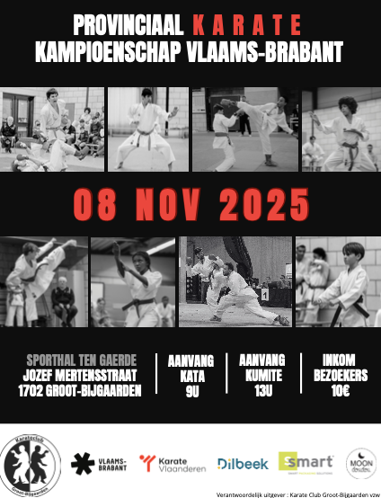 Op zaterdag 8 november 2025 vindt in Groot-Bijgaarden het Provinciaal Karate Kampioenschap Vlaams-Brabant plaats. Dit sportieve evenement wordt georganiseerd door het Provinciaal Karate Comité Vlaams-Brabant, in samenwerking met de lokale club Karate Club Groot-Bijgaarden.